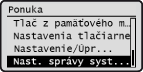 Všetky nastavenia správy systému sú uvedené s krátkymi opismi. Predvolené nastavenia sú označené krížikom (
