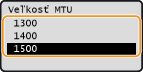 Vo väčšine sietí Ethernet je maximálna veľkosť paketu, ktorý sa dá odoslať, 1500 bajtov. Paket označuje sekvenciu dát, do ktorých sa pred odoslaním rozdelia originálne dáta. Maximálna prenosová jednotka (MTU) sa v každej sieti môže meniť. Podľa potreby zmeňte nastavenia stroja. Viac informácií získate od správcu siete.