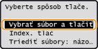 vyberte položku <Vybrať súbor a tlačiť> a stlačte