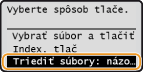 Keď vyberiete položku <Dátum/čas (vzostupne)> alebo <Dátum/čas (zostupne)>, súbory sa utriedia na základe dátumov a časov úpravy súborov.