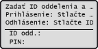 na ovládacom paneli. Správa ID oddelení zap./vyp. Prihlásenie k stroju