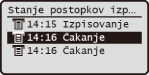 Prikaz trenutnega stanja postopkov izpisovanja.
