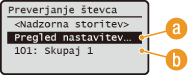 (Preverjanje števca), se odpre zaslon <Preverjanje števca>. Na tem zaslonu lahko pregledujete vrednosti števcev kot tudi serijsko številko stroja in nastavitve (konfiguracijo) stroja.