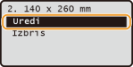 Izberite registrirano velikost, ki jo želite spremeniti, in pritisnite .