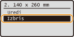 Če ste že registrirali velikosti papirja od <1> do <3>, za nadaljevanje spremenite ali izbrišite nastavitev. Spodaj je opisan postopek spreminjanja in brisanja teh nastavitev.