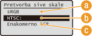 Izberite <sRGB>, <NTSC> ali <Uniformno RGB>