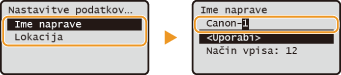 Vpišite <Ime naprave> ali <Lokacija> (Vpisovanje besedila)