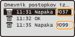 Trimestna številka (koda napake) je izpisana na zaslonu <Nadzor stanja>, če se pojavi napaka, na primer ko je izpisovanje neuspešno ali je pomnilnik poln. Spodaj preverite vzroke in rešitve za posamezne kode napak.