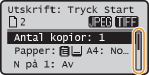 för att rulla uppåt eller nedåt. Text och bakgrundsfärger (svart och vitt) för ett objekt inverteras när det markeras.