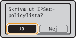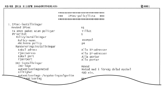 Du kan skriva ut en lista för att kontrollera policynamn och IPSec-inställningar som har registrerats på enheten.