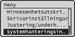 Alla inställningar för Systemhantering - inställningar visas med korta beskrivningar. Standardinställningarna markeras med ett kors (