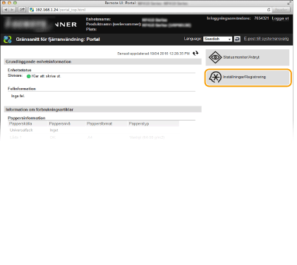 Klicka på [Inställningar/Registrering].