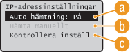 <Delnätsmask> <Gatewayadress>.Ange inställningen med sifferknapparna och tryck på