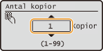 eller sifferknapparna för att ange ett antal, och tryck sedan på