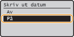 för att välja <På> och tryck på