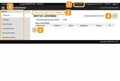 Visar status för aktuella utskriftsdokument samt historik över utskrift. Du kan även kontrollera enhetens status.