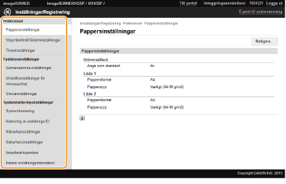 Du kan bara ändra inställningarna under [Systemhanteringsinställningar] när du har loggat in i systemhanteringsläget.