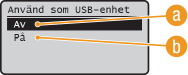 Du kan avaktivera USB-port för datoranslutning. Om porten är avaktiverad kan enheten inte kommunicera med en dator via USB. Inställningen påverkar inte andra USB-portar