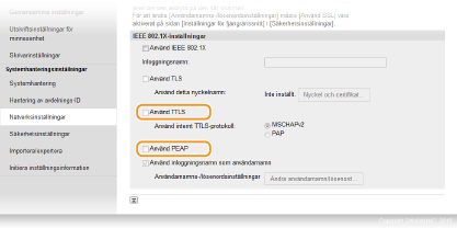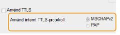 Markera kryssrutan [Använd TTLS] eller [Använd PEAP].