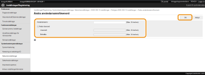 [Användarnamn] Ange upp till 24 alfanumeriska tecken för användarnamnet.