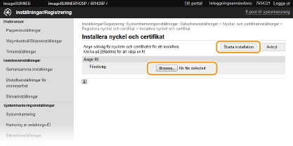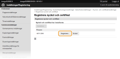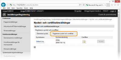 Klicka på [Registrera nyckel och certifikat] eller [Registrera CA-certifikat].