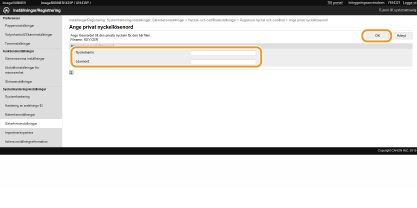 Ange namnet på nyckelparet och lösenord och klicka sedan på [OK].