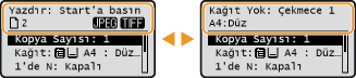 Kağıdın bitmesi ve toner düzeyinin düşük olması gibi durumlarda ekranın en üstünde mesajlar görüntülenir. Ekran sırayla normal ekranı ve mesajı gösterir.