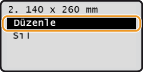 Değiştirmek istediğiniz kayıtlı boyutu seçin ve