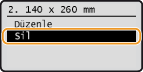 Silmek istediğiniz kayıtlı boyutu seçin ve