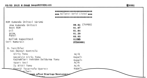 Bu liste <Ağ Ayarları> ve <Sistem Yönetimi Ayarları> ayarlama bilgilerini içermez. Tüm ayar öğelerini kontrol etmek için, Sistem Yöneticisi Veri Listesini yazdırın.