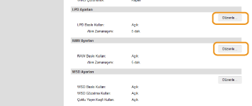 İşletim panelini kullanmaLPD, RAW ve WSD ayarlarına