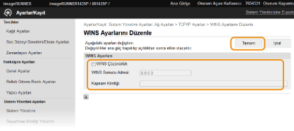[WINS Çözünürlük] onay kutusunu seçin, gerekli ayarları belirleyin ve [Tamam] seçeneğine tıklayın.