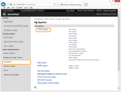 [TCP/IP Ayarları] seçeneğine tıklayın.