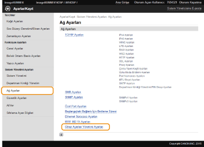 * iW Management Console hakkında daha fazla bilgi için, yerel yetkili Canon satıcısı ile temas kurun.