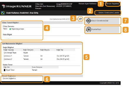 Makinenin geçerli durumunu ve hata bilgilerini görüntüler. Bir hata oluştuysa, [Hata Bilgisi] sayfasının bağlantısı görüntülenir.
