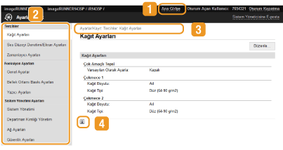 [Sistem Yönetimi Ayarları] altındaki ayarları yalnızca Sistem Yöneticisi Modunda oturum açtığınızda belirleyebilirsiniz.