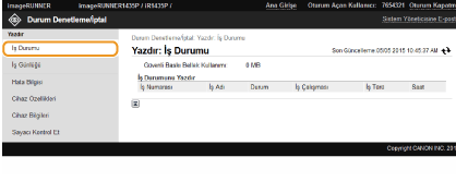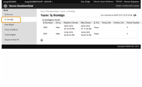 Sistem Yöneticisi moduna giriş yaparken, o anda işlenmekte olan tüm yazdırma belgeleri görüntülenir.