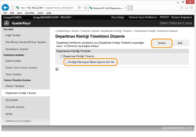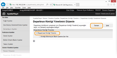 [Departman Kimliği Yönetimini Kullan] onay kutusunu seçin ve sağındaki [Ayarlar] öğesini tıklatın.