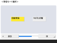 ファクス機能を使うために必要な設定を行います。 ![]() ファクスに必要なオプション(システムオプションについて)が装着されていない場合はStep 11に進みます。 ![]() ファクス番号を入力し、<次へ>を押します。 ファクスの設定について詳しくは、ファクスの設定をするを参照してください。 ![]() ![]() <設定>を押してユーザー略称を入力し、<次へ>を押します。 ![]() ![]() 回線種類を選び、<次へ>を押します。 ![]() ![]() ファクス機能のみ使う場合は<自動受信>、電話機やハンドセットを接続しているときは<FAX/TEL切替>を押し、<OK>を押します。 | |