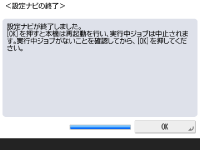設定ナビを使わない場合は、Step 1の画面で<設定ナビの終了>を押してください。 設定ナビで行った各設定(<トナーかくはん>以外)は、 を押して、あとから個別に設定内容を変更することもできます。 |