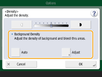 ![]() | You can adjust the density of the entire original. For example, increasing the density enables you to easily read faint characters written in pencil. Adjusting the Density of the Entire Original |