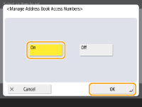 ![]() | You can prevent the leakage of sensitive or personal information from the Address Book by setting a PIN or preventing certain destinations from being displayed in the Address Book. You can also hide the Address Book itself. Administrator privileges are required in order to configure these settings. |