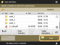 If <Select Option When Connecting Memory Media> is set to <On>, a shortcut to <Scan and Store in Memory Media> is displayed when you insert memory media. Press <Scan and Store in Memory Media> and proceed to step 4. <Select Option When Connecting Memory Media> Inserting a memory media