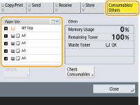 If you press <Close> on the screen indicating that there is a paper jam, you may be able to continue to perform operations and specify settings without immediately removing the paper jam.