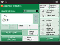 Pantalla de funciones básicas de fax