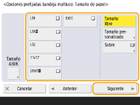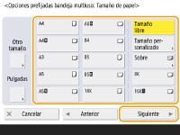 2 | Seleccione el tamaño de papel. ![]() ![]() Para obtener información sobre los tamaños de papel mostrados cuando se pulsa <Otro tamaño>, consulte Papel disponible. |