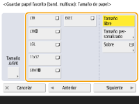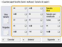 2 | Seleccione el tamaño de papel. ![]() ![]() Para obtener información sobre los tamaños de papel mostrados cuando se pulsa <Otro tamaño>, consulte Papel disponible. |