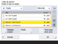 <OK>. Enregistrement du format et du type de papier fréquemment utilisé avec le plateau multifonctions