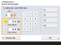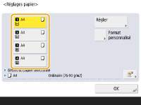 1 | Sélectionnez la cassette à papier dans laquelle le papier est chargé et appuyez sur <Format personnalisé>. |