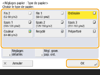 Quand <Ordinaire> est sélectionné, vous pouvez appuyer sur <Régl. gram. pap. ord.> pour sélectionner le grammage du papier.